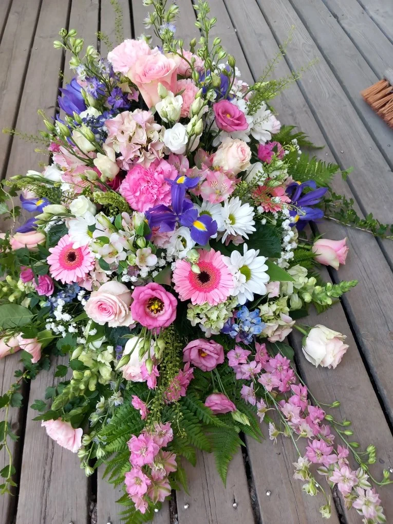 Blommor till begravning är viktiga och vi vill göra valet så enkelt och bekvämt som möjligt för dig. Hos oss kan du i lugn och ro välja vackra begravningsblommor och skicka en sista hälsning. Välj mellan vackert utformade sorgdekorationer, begravningskransar eller sorgbuketter med textat band eller ett kort. Leveransen sker i rätt tid och direkt till begravningen.